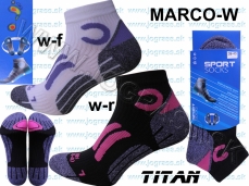 Titan: Bežecké ponožky.Funkčné ,vysoko elastické , pre outdoor a fitness so špeciálnymi polstrovanými zónami v priehlavku a na chodidle, ktoré efektívne bránia tvorbe otlakov a chránia tak nohu pri extrémnej záťaži . Ideálne anatomické tvarovanie navrhnuté pre ľavú a pravú nohu zvlášť. Špeciálne vlákna zabezpečujú odvod potu a vzdušnosť.
